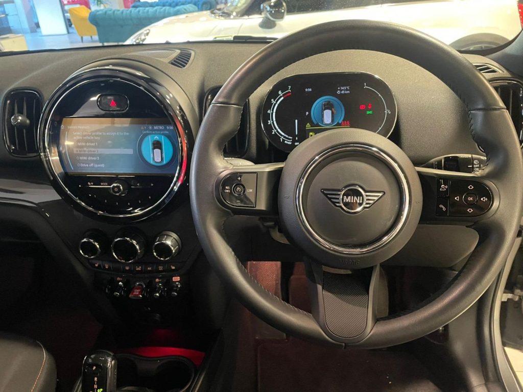 MINI Cooper Countryman Armrest, Seat adjustment, rear seats, Park Distance Control (PDC) Rear, LED headlights with extended contents, Cloth Firework Carbon Black/Carbon Black, 17" Channel Spoke Black / runflat tyres, Seat heating for driver and front passenger, Real Time Traffic Information, Smartphone Integration, MINI navigation system, Multifunctional instrument display, Preparation for trailer tow hitch